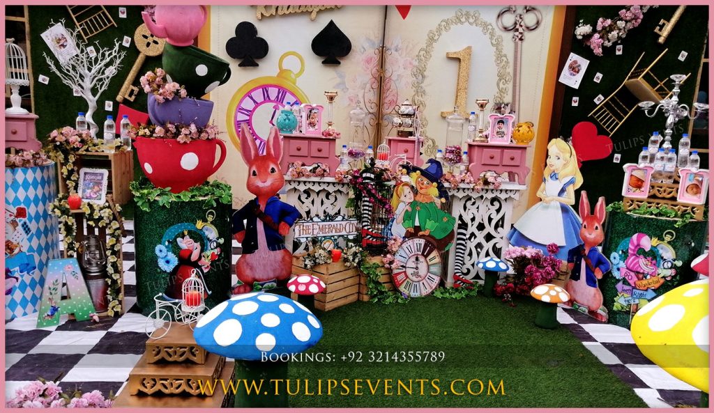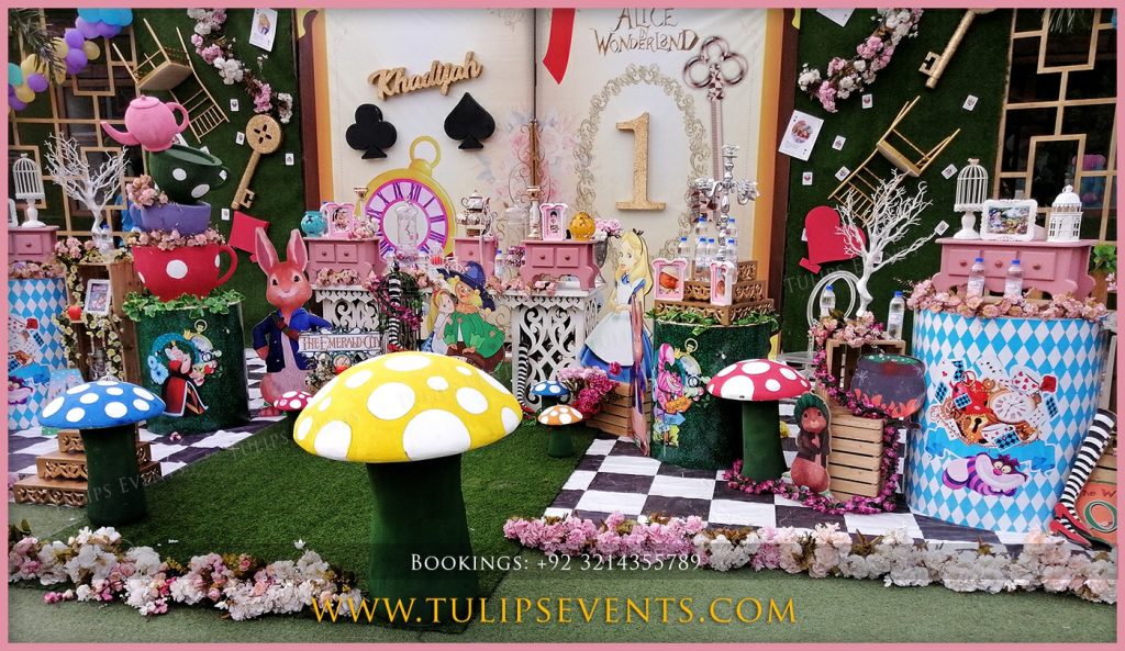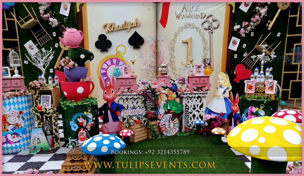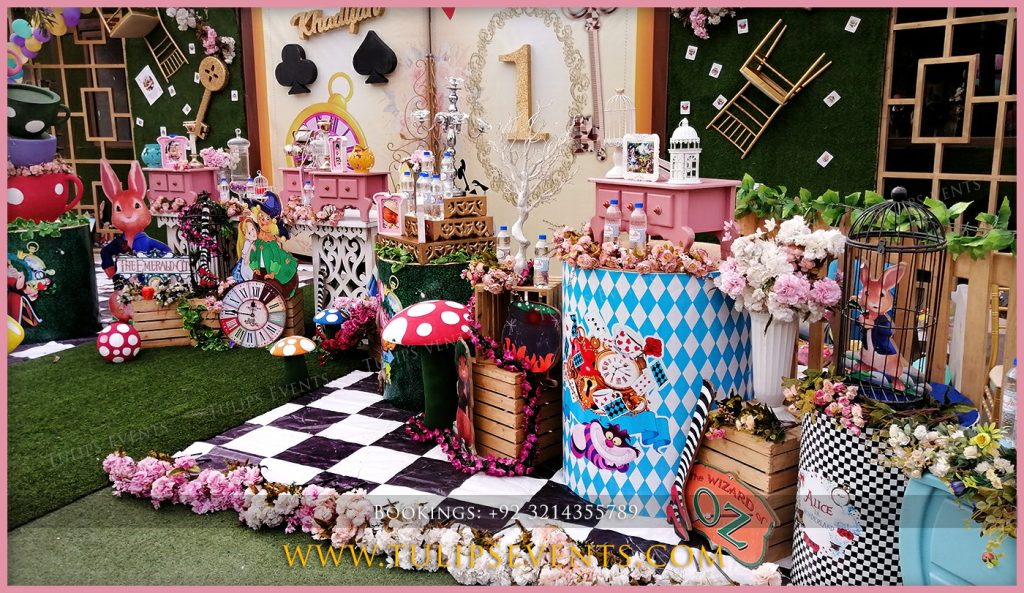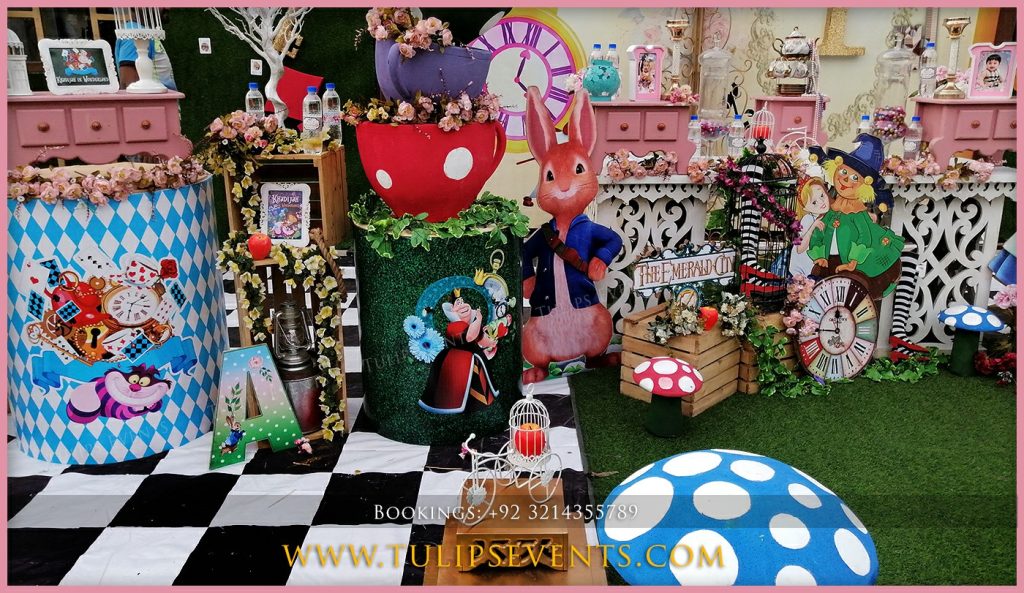 Tulips creative themed birthday party planner give you another magical wonderland with our latest Alice in Wonderland party decorations in Pakistan.