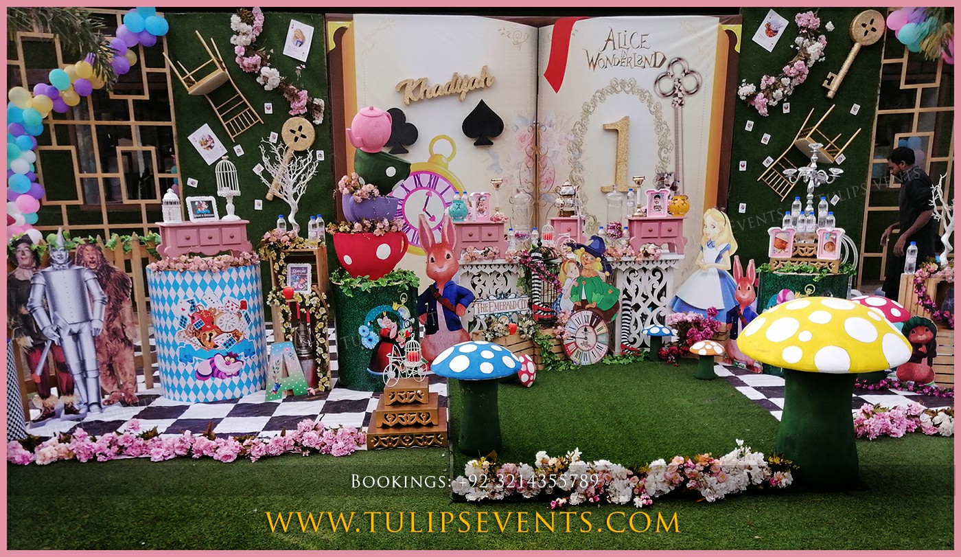 Tulips creative themed birthday party planner give you another magical wonderland with our latest Alice in Wonderland party decorations in Pakistan.