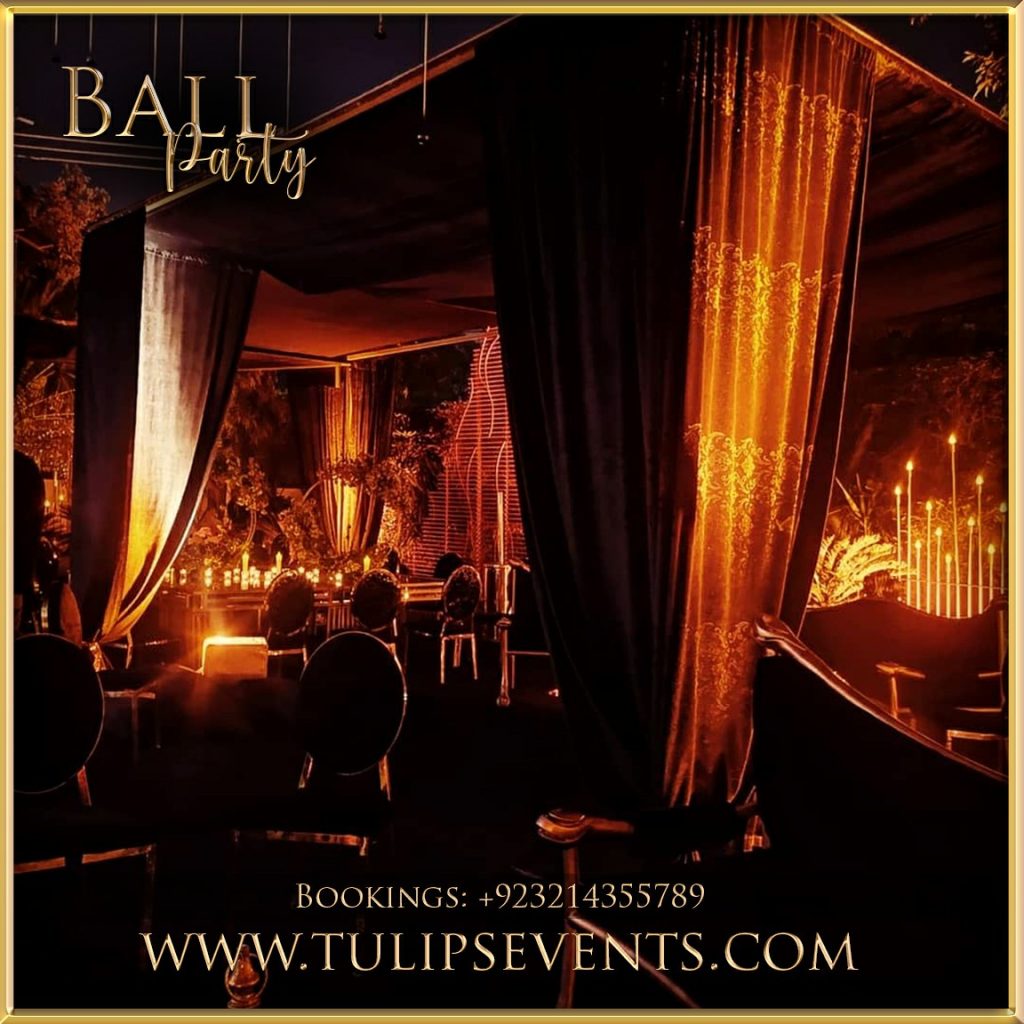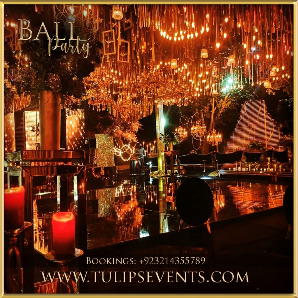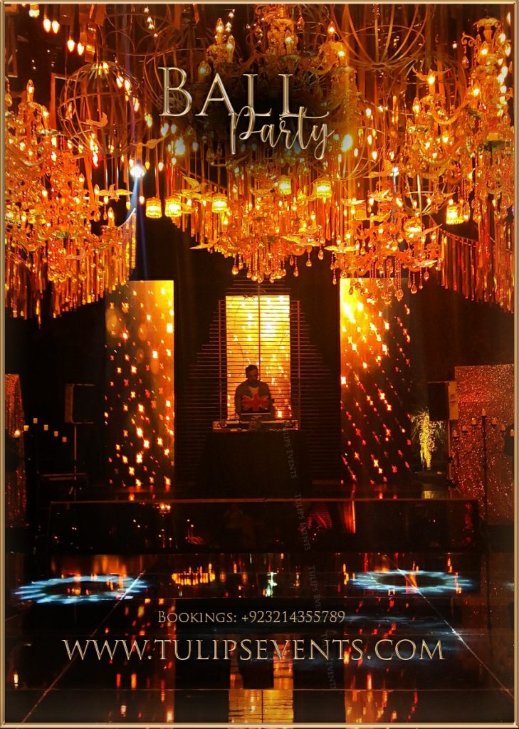 Find the amazing Black Theme Ball Party decor ideas in Pakistan. Complete event dance floor, ceilings decor, and hanging guideline.