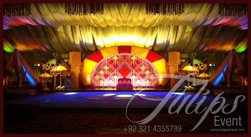 “mehendi stage deisgn, pakistani weddings, mehendi setup planner, wedding designer, mehendi dance floor, mehendi dance group, wedding dj, mehendi event decoration, Colorful Mehendi Setup, stage flowering in Pakistan”