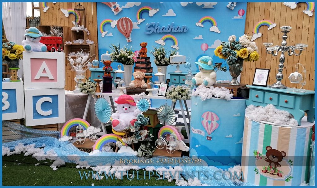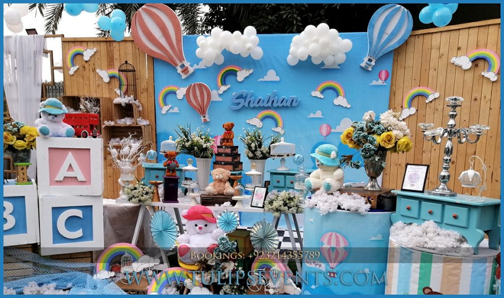 Starting from the darling baby blue theme and exclusively 3d hot air balloons style gives an extravaganza wow factor to your birthday events in lahore. You’ll find the 3d name characters which place on the backdrop along with clouds, rainbows and non other then hot air balloons.