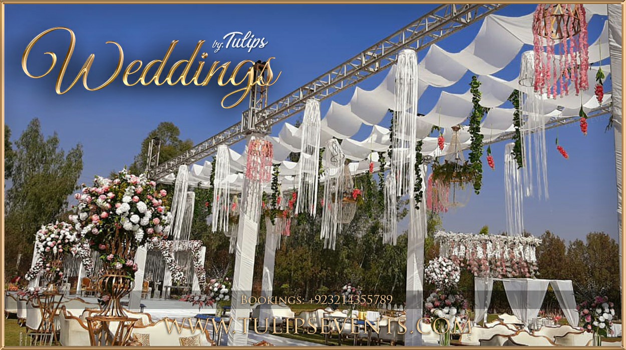 Find the best outdoor Pakistani wedding outdoor Nikah with openair themed decoration setup ideas designed by Tulips Events Management in Pakistan.