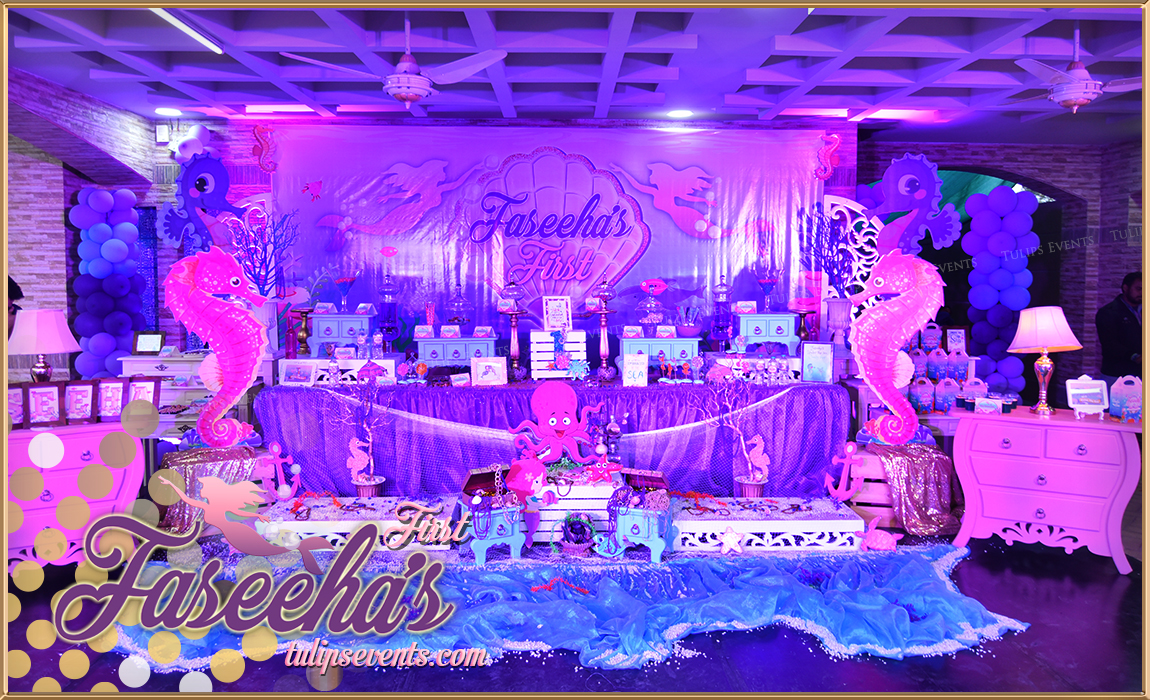 Explore the ocean life and sea creatures are fascinating and make an amazing at this glamorous Little mermaid birthday party ideas by Tulips Creative team in Lahore Pakistan.