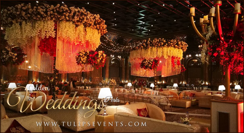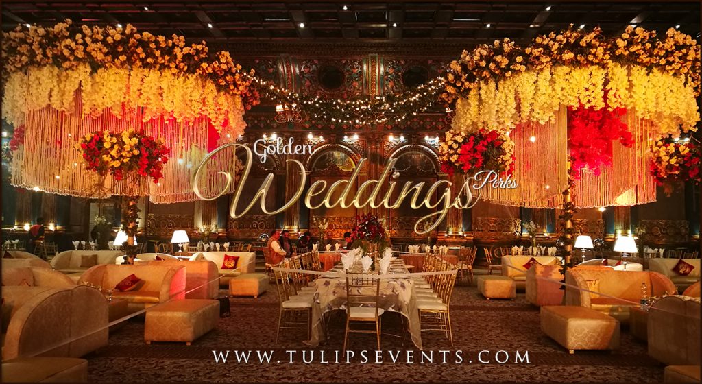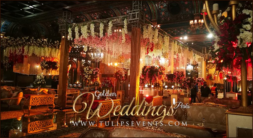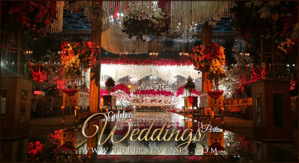 Tulip creative team always brings new concept to Pakistani weddings with Royal Gold Wedding Reception stage decoration ideas in Pakistan.
