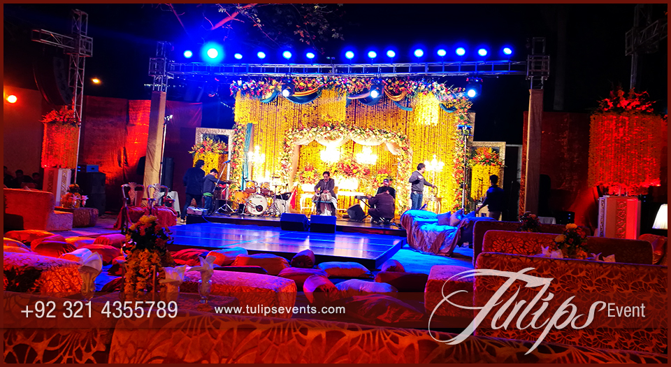 Still needs to plan a traditional Pakistani weddings Sangeet Night Theme Stage setup at your home, backyard or farm house. Can’t decide what to do ? contact us today!