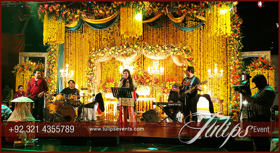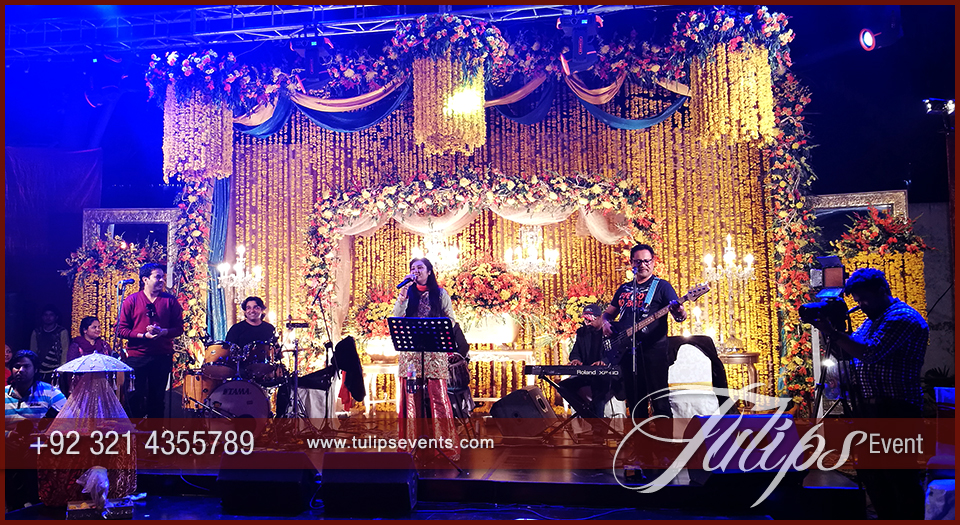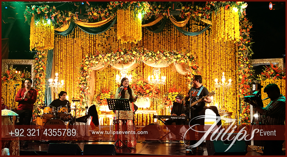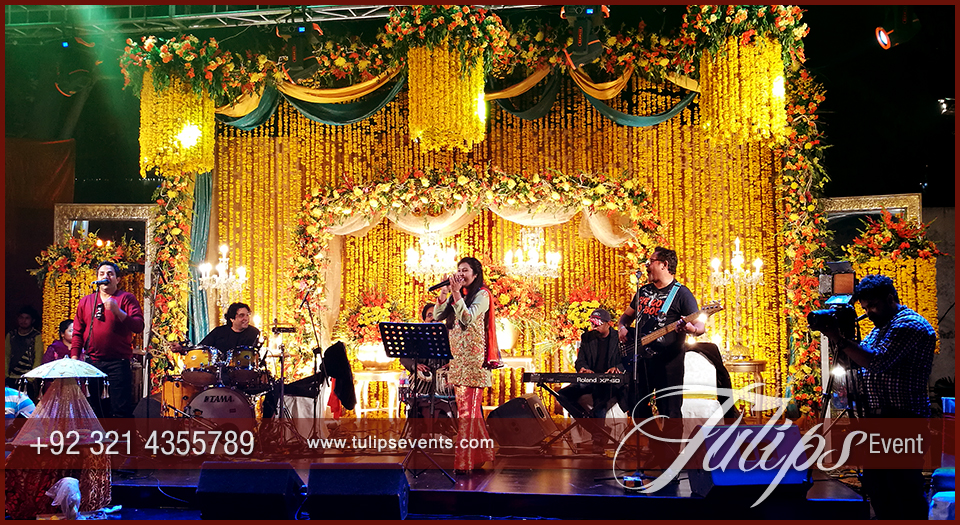 Sara Raza Khan was the lead singer with live band performance. Perfectly synced with people and musical masti all the sangeet night. People sitting around the dance floor and over the lounges having fun and enjoy the whole setup with sara raza khan live performance.