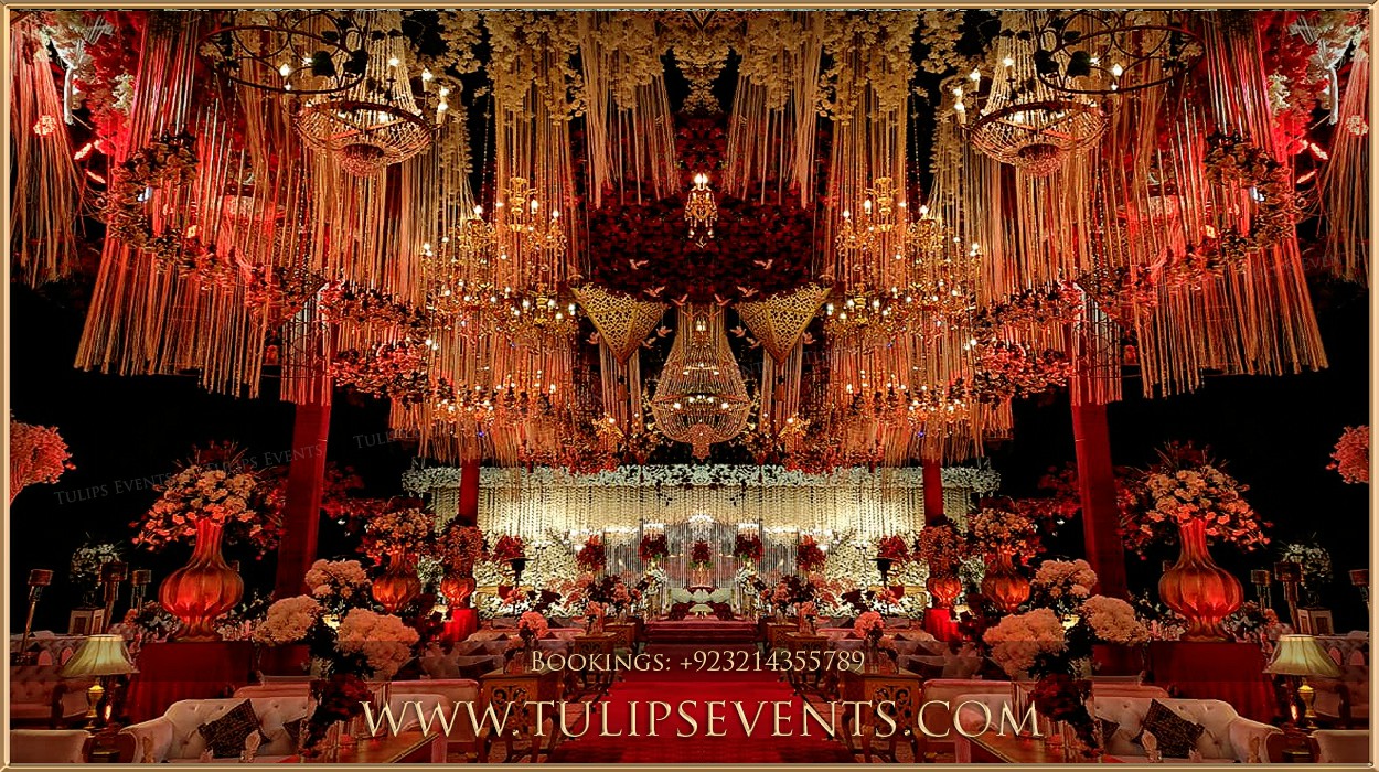 Tulips Events Always offers you highly professional wedding planning, arrangements and management services at Lahore, Islamabad, Gujarat, Sialkot and almost all Pakistan. In Other words Ceiling decoration is the constant source of popularity of Pakistani weddings in 2019.