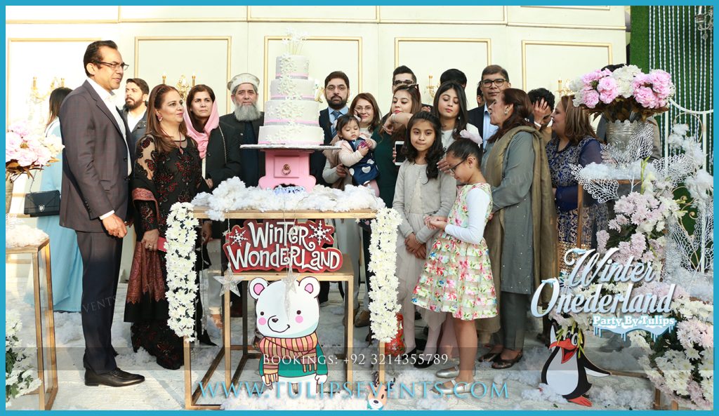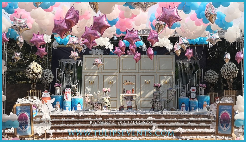 Celebrate your little one’s first birthday in magical style with Winter ONEderland Birthday Planner in Lahore by Tulips Events. Specializing in dreamy winter-themed decor, Tulips Events transforms your venue into a snowy paradise with frosty blue tones, snowflakes, igloos, and adorable polar bear props.
