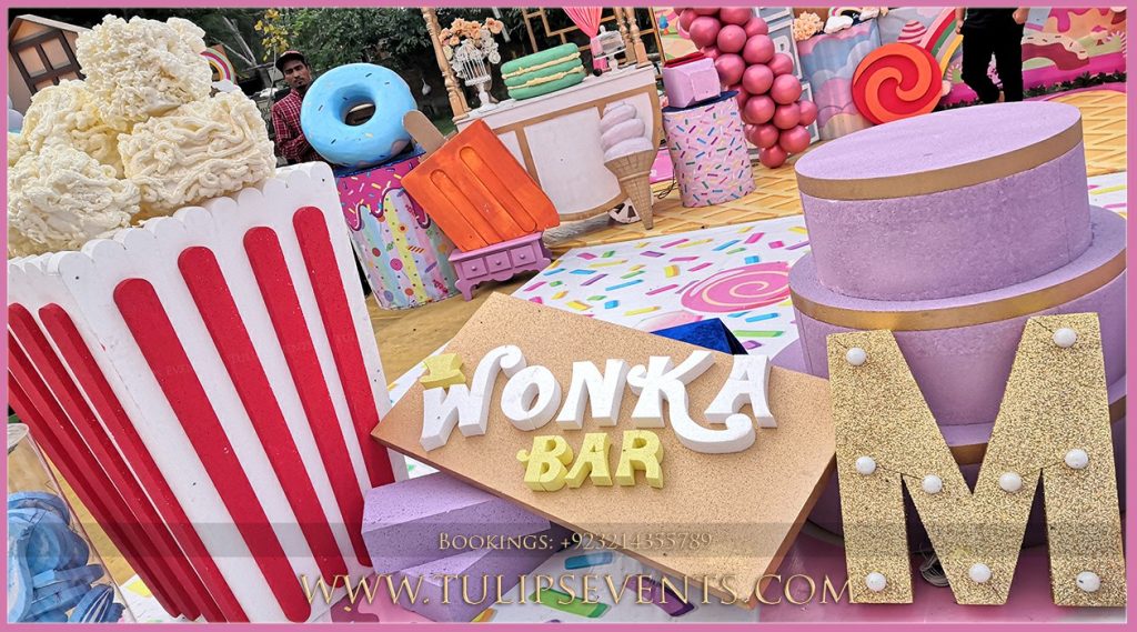 This is also called Charlie and the Chocolate Factory & Wonka Party Ideas. Our custom-made Wonka bar 3d objects and never less customize Wonka wonderland gate gives you exciting new decorations concepts in Pakistan.